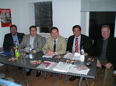 Sinsheim. Auf Einladung der Arbeitsgemeinschaft für Arbeitnehmerfragen ( AfA ) in der SPD fand am 6.3.2006 eine Diskussionsveranstaltung zu den Themen Messeabbau in Sinsheim und die Wirksamkeit des Kombilohns für die Entstehung von Arbeitsplätzen statt. Als Gäste konnten für die Diskussionsrunde Hans-Jürgen Moos, Bürgermeister von Meckesheim und Kandidat für die Landtagswahl, Stefan Rebmann, Vorsitzender des DGB Rhein-Neckar und Michael Seis, IG Metall Gewerkschaftssekretär, gewonnen werden. Für die Veranstaltung stellte die IG Metall ihre vor kurzem bezogenen, neuen Räume am Kirchplatz in Sinsheim zur Verfügung. Die Moderation der Veranstaltung übernahm Gisbert Kühner, der Vorsitzende der AfA Rhein-Neckar.