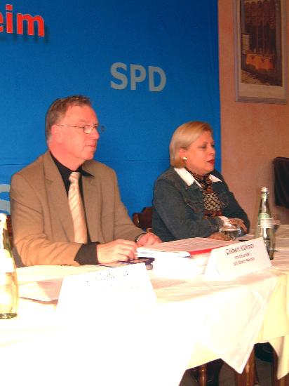 Am Abend fand die Veranstaltung zum Thema Armut in Deutschland statt. Neben Hilde Mattheis nahm Lars Castellucci, der Vorsitzende der SPD Rhein-Neckar die Einladung gerne wahr. Die Moderation der Veranstaltung übernahm Gisbert Kühner von der AfA. Hilde Mattheis bestätigte in ihren Ausführungen, dass es in Deutschland in der Tat Armut gebe. „ Armut bedeutet eine große soziale Ungerechtigkeit. Reichtum hat sich immer mehr konzentriert und die Schere zwischen Arm und Reich geht immer mehr auseinander, “sagte sie und ergänzte: „ Das Risiko, arm zu werden, bedroht zunehmend Alleinerziehende.“ Die Entwicklung einer sich immer weiter öffnenden Schere muss nach ihrer Ansicht aufgehalten werden. Deshalb verlangt sie ein besseres Bildungsangebot schon im frühkindlichen Alter, die Vereinbarkeit von Familie und Beruf bei einer höheren Frauenerwerbsquote und die Verbesserung der Durchlässigkeit im sozialen Milieu.